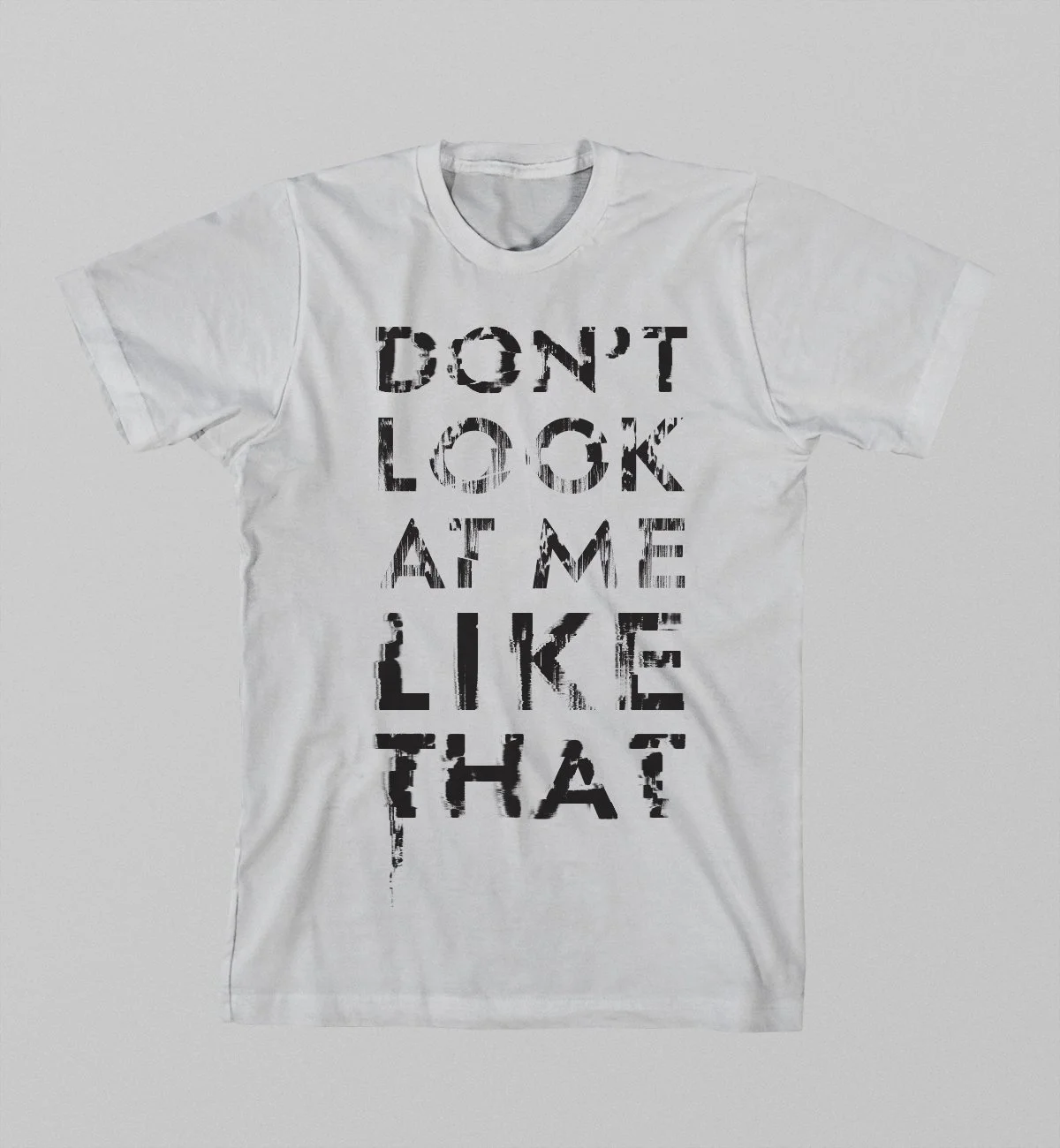 Glitch text on white, short sleeve shirt